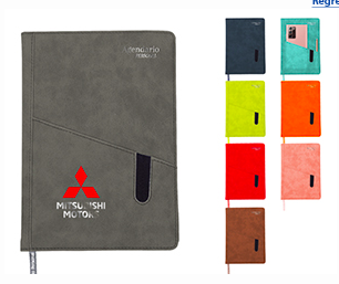 Cuatro planeadores anuales, planeador de gastos, planeador de fechas importantes, calendarios 2022 a 2025, hojas rayadas, el encabezado de cada página cuenta con espacio para anotar la fecha y día de la semana, directorio de contactos, notas, y separador de listón. Diseño de portada con dos compartimentos en el exterior, uno para bolígrafo (no incluido) y el otro para smartphone.