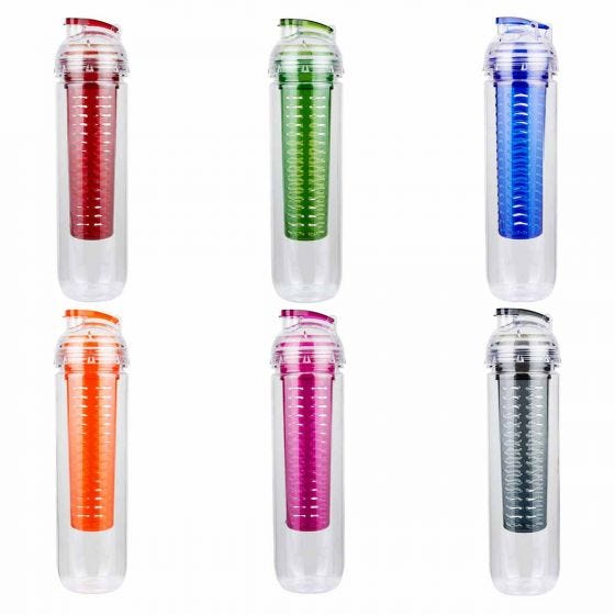 Cilindro con infusionador para frutas o bolsas de té. Tapa con sistema de rosca.