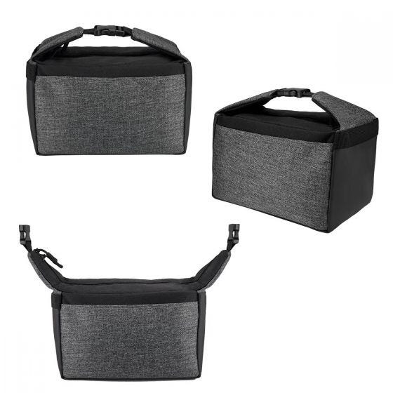 Interior plastificado. Bolsa frontal y agarradera con broche de plástico.
