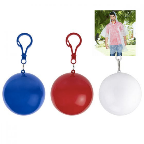Incluye impermeable de plástico transparente. Estuche redondo con gancho de plástico.
