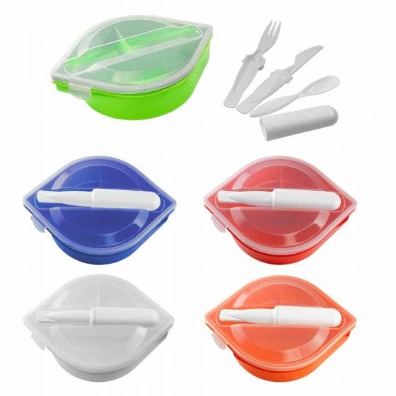 Incluye portacubiertos con cuchara, tenedor y cuchillo. 3 Compartimentos.