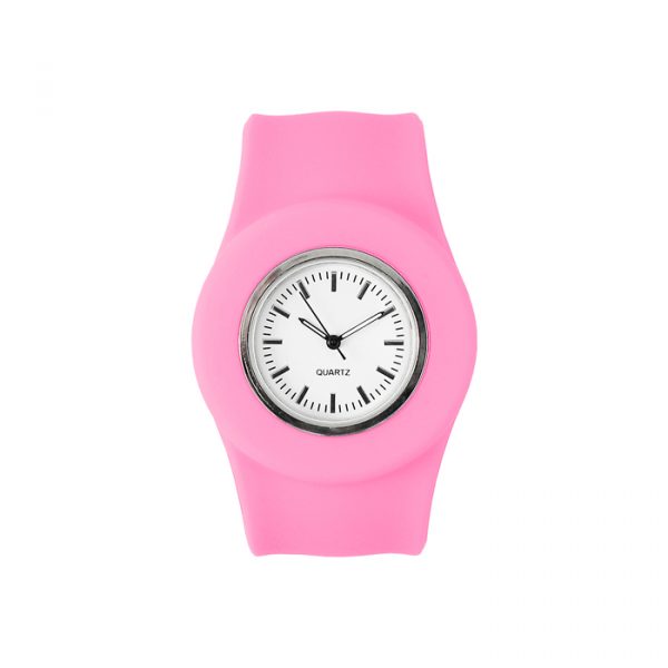 Reloj unisex de brazalete flexible, fabricado en silicón. No incluye estuche.