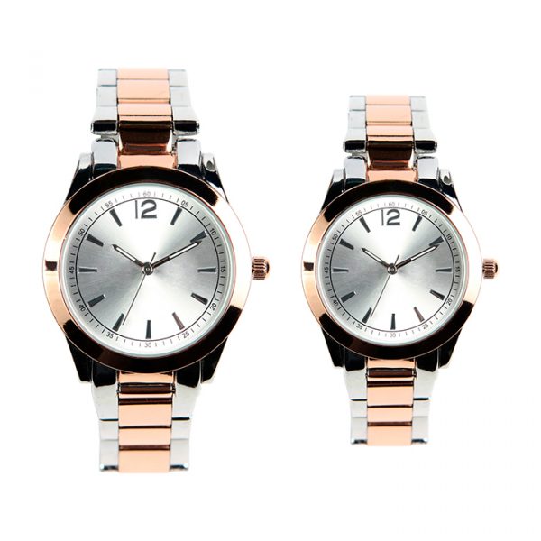 Reloj metálico bi-tono de acero inoxidable y maquinaria japonesa