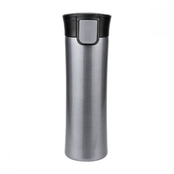 Doble pared. Cerrado al vacío. Pared interna y externa acero inoxidable. La tapa incluye botón pulsador para abrir y cerrar con sistema desmontable.
